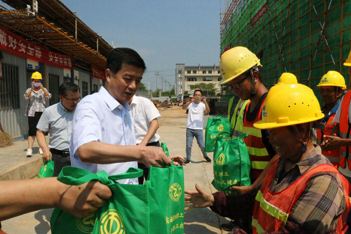 近日,黃山市天氣持續(xù)高溫酷熱,驕陽似火,黃山博盛消防裝備有限公司新廠區(qū)1-2#車間及研發(fā)中心工人仍堅守在施工一線,頂烈日,搶工期。7月26日上午,屯溪區(qū)委書記吳旭光、區(qū)委副書記、區(qū)長楊林,區(qū)人大常委會主任朱學(xué)軍,區(qū)政協(xié)主席袁震宇,區(qū)政協(xié)副主席杜祖紅等一行深入工地現(xiàn)場,開展“送清涼進工地”活動,看望慰問項目部一線職工。