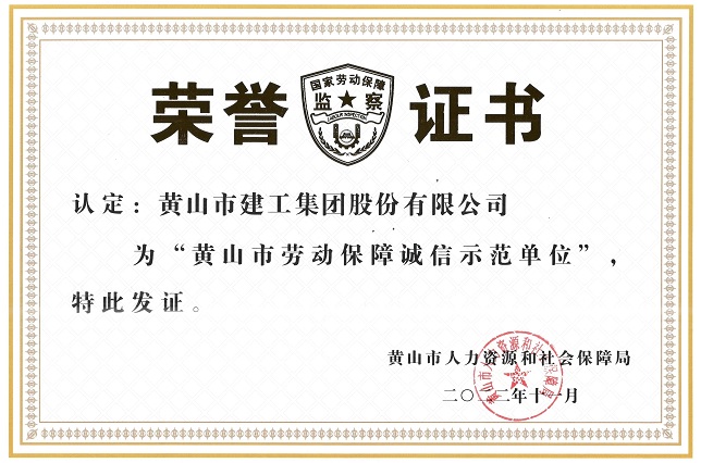 此次被評(píng)為“黃山市勞動(dòng)保障誠(chéng)信示范單位”是政府部門對(duì)集團(tuán)公司守法誠(chéng)信、合法用工的充分肯定。黃山市建工集團(tuán)股份有限公司將珍惜榮譽(yù),不忘初心,持續(xù)做好示范引領(lǐng)作用,積極構(gòu)建和諧的勞動(dòng)關(guān)系,加強(qiáng)合法用工意識(shí),促進(jìn)公司的平穩(wěn)健康發(fā)展。