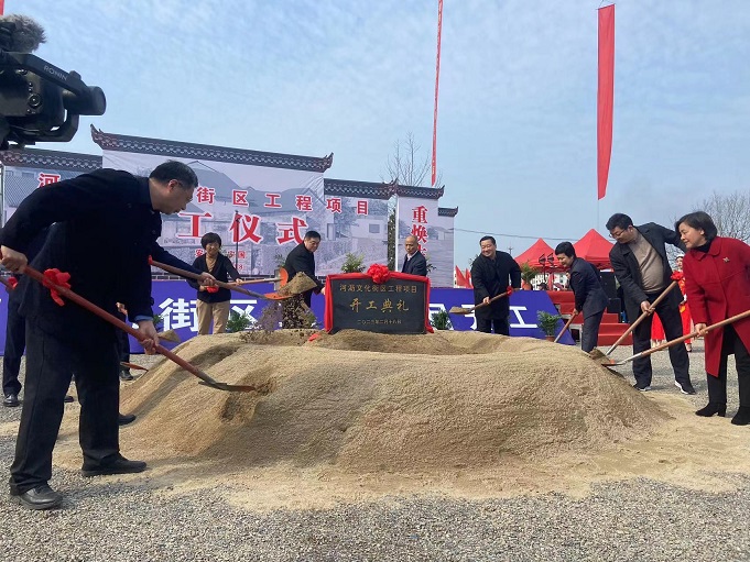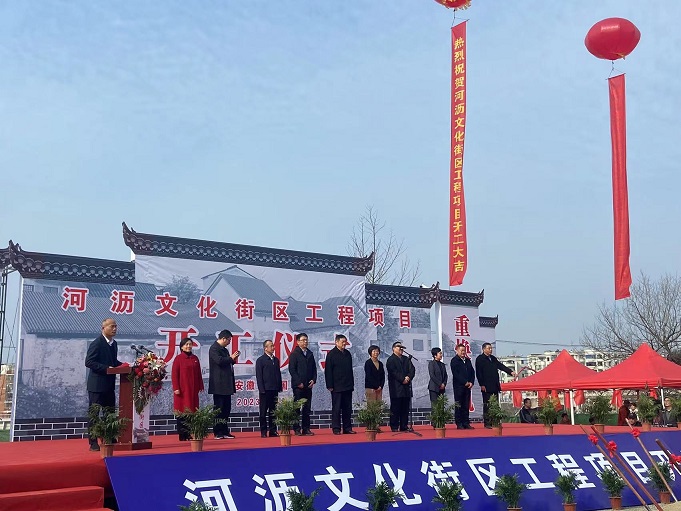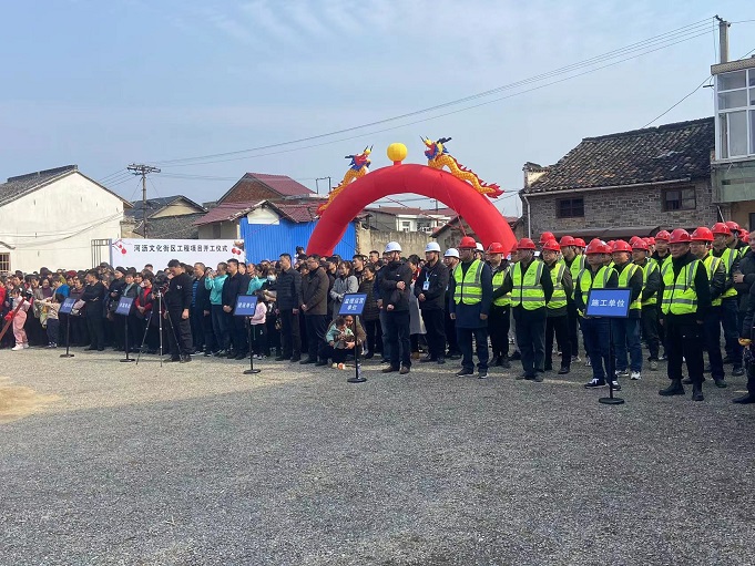 黃山建工集團董事長項端陽、總經(jīng)理葉金發(fā)、副總經(jīng)理吳學(xué)武及項目負(fù)責(zé)人和部分施工人員參加了寧國市河瀝溪文化街區(qū)工程項目的開工盛典。