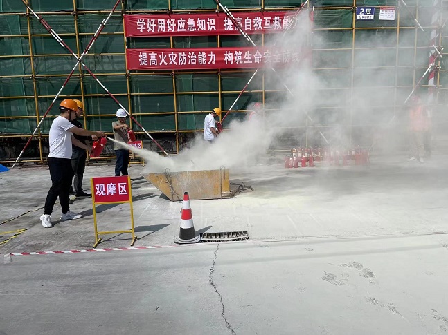 2023年6月是全國第22個“安全生產(chǎn)月”,為深入貫徹落實習近平總書記關于安全生產(chǎn)重要論述,嚴格落實集團公司關于安全生產(chǎn)各項規(guī)定,進一步強化公司整體消防應急救援綜合能力。6月8日下午,集團公司在齊云府六期項目開展“人人講安全、個個會應急”消防安全應急演練活動。項目安全員開展消防器材的使用、撲救初起火災疏散逃生等消防安全常識的培訓。以通俗易懂的方式,深刻警示全體員工要提高對消防安全的重視。