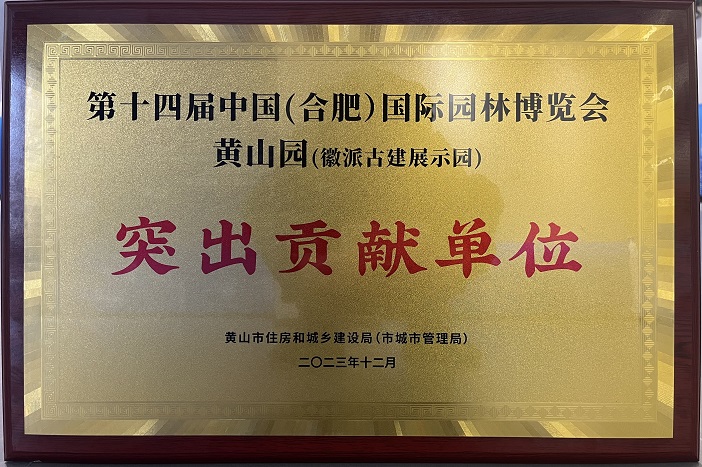 12月18日下午,中國(guó)(黃山)第三屆徽派古建產(chǎn)業(yè)發(fā)展大會(huì)古建產(chǎn)業(yè)高質(zhì)量發(fā)展推進(jìn)會(huì)·新安茶會(huì)舉行。推進(jìn)會(huì)上頒發(fā)了第十四屆中國(guó)(合肥)國(guó)際園林博覽會(huì)黃山園(徽派古建展示園)“突出貢獻(xiàn)單位”獎(jiǎng)項(xiàng),作為黃山園項(xiàng)目參建單位之一的黃山建工集團(tuán)再獲殊榮。